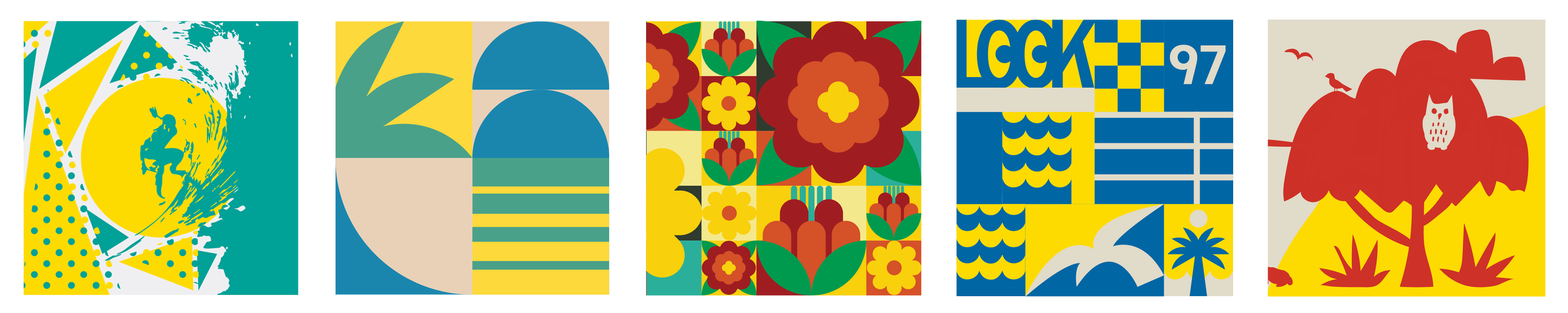The process started with developing style tiles inspired by the culture of San Diego. I pulled inspiration from the surf culture, natural features, and historical landmarks to name a few sources of inspiration.